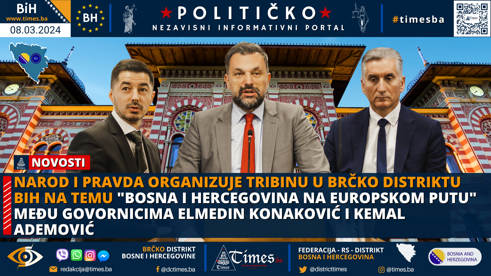 Govornici na tribini su : Damir Bulčević, predsjednik Naroda i pravde Brčko distrikta BiH, Rusmir Pobrić, politički direktor Naroda i pravde BiH, Kemal Ademović, zamjenik predsjednika Naroda i pravde BiH i Elmedin Konaković, predsjednik Naroda i pravde BiH.