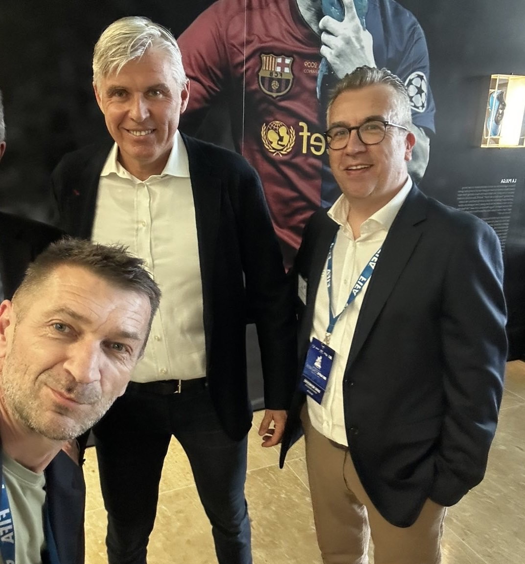 Novinari Edin Borovina i Dario Mehmedović s predsjednikom sudijskog odbora UEFA-e Robertom Rosettijem
