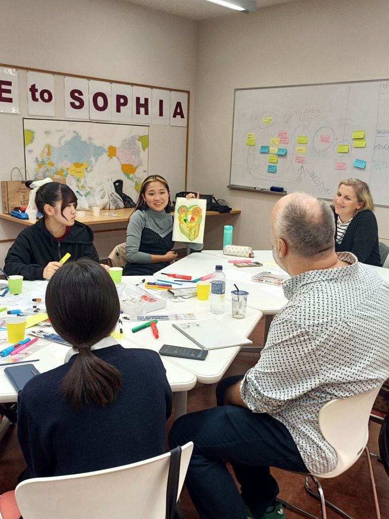 Prvi dio radionice, koji je vodila prof. dr. Kasumagić-Kafedžić, bio je posvećen diskusiji i kreativnoj razmjeni ideja. Studenti su identificirali tri ključna problema u japanskom društveno-političkom, odgojno-obrazovnom i kulturnom kontekstu, ukorijenjenih u tradicionalnom patrijarhalnom društvu: prava žena, inkluzija i položaj mladih. Ključni pojmovi za potencijalna rješenja bili su empatija, pravičnost i promjene u obrazovanju.
