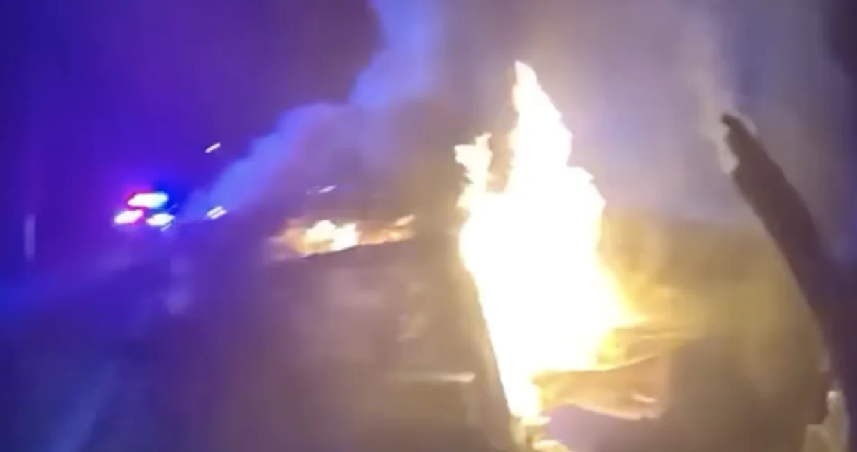 Policijski službenici brzo su locirali ukradeni automobil samo nekoliko ulica dalje. Kada su pokušali zaustaviti osumnjičenog, on je udario u drugo vozilo, izazivajući požar koji je zarobio nevinog vozača u zapaljenom automobilu.