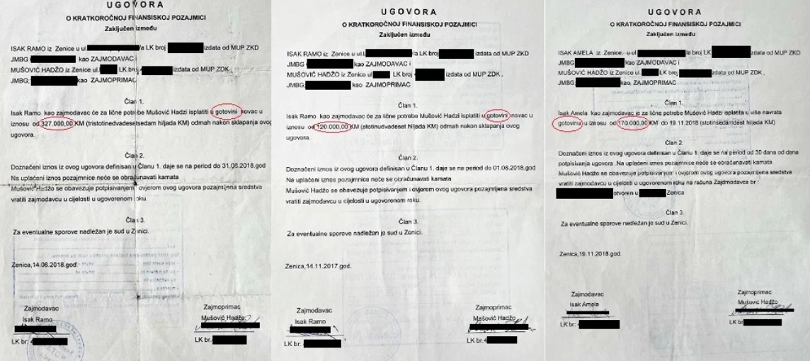 Prije nego što će biti uhapšen, Hadžo Mušović je izjavljivao da ga Ramo Isak ucjenjuje i da od njega traži velike sume novca. Isak je u izjavama za medije negirao da je ucjenjivao svog nekadašnjeg poslovnog partnera, ali je naveo da mu Mušović duguje nekoliko stotina hiljada maraka na ime pozajmica koje je dobijao od Isaka i njegove supruge. Taj novac je Hadži Mušoviću isplaćivan u kešu, uz notarski ovjerene ugovore. Prema ovim ugovorima, Isak i njegova supruga su Mušoviću isplatili više od 600.000 maraka.