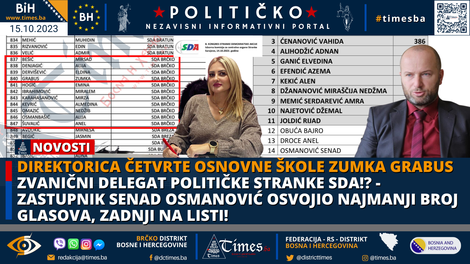 Senad Osmanović Zastupnik u Skupštini Brčko distrikta BiH ispred političke stranke SDA na 8. Kongresu Stranke Demokratske Akcije – SDA koji se održao u Sarajevu, nije dobio dovoljan broj glasova i time nije prošao kao kandidat u “ETIČKI ODBOR” SDA BiH.