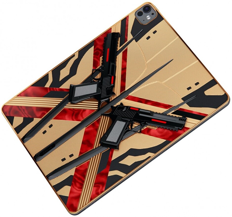 Panel oko pištolja je “presvučen” 24-karatnim zlatom. Kućište tablet kompjutera izrađeno je od titanija tehnikom koja se inače koristi za proizvodnju luksuznih švicarskih satova.