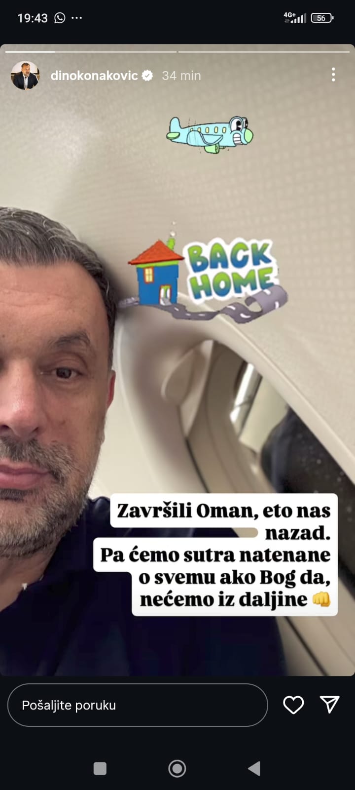 “Završili Oman, eto nas nazad. Pa ćemo sutra natenane o svemu ako Bog da, nećemo iz daljine”.