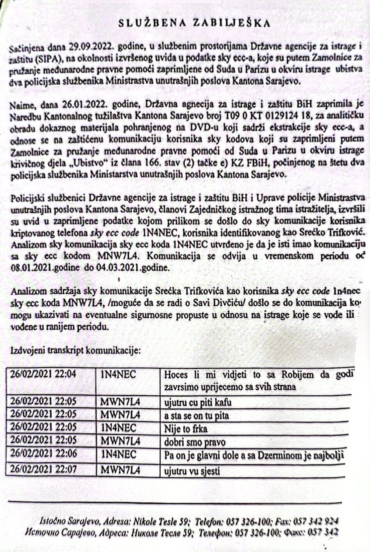 Pošto slika govori više od hiljadu riječi, naročito onih Pašićevih, u prilogu možete pročitati službeni akt SIPA-e u kojem piše da je tužilac Džermin Pašić, ipak, pominjan u kriptovanim Sky porukama.