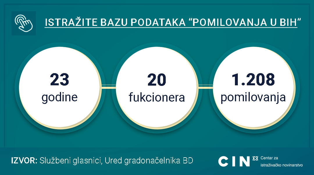 Podaci o pomilovanjima iz prošle godine uvršteni su u CIN-ovu bazu podataka „Pomilovanja u BiH“ u kojoj se nalaze podaci o pomilovanjima od 2003. godine koje su dali: Predsjedništvo BiH, predsjednici FBiH i RS-a te gradonačelnici Brčko distrikta BiH.