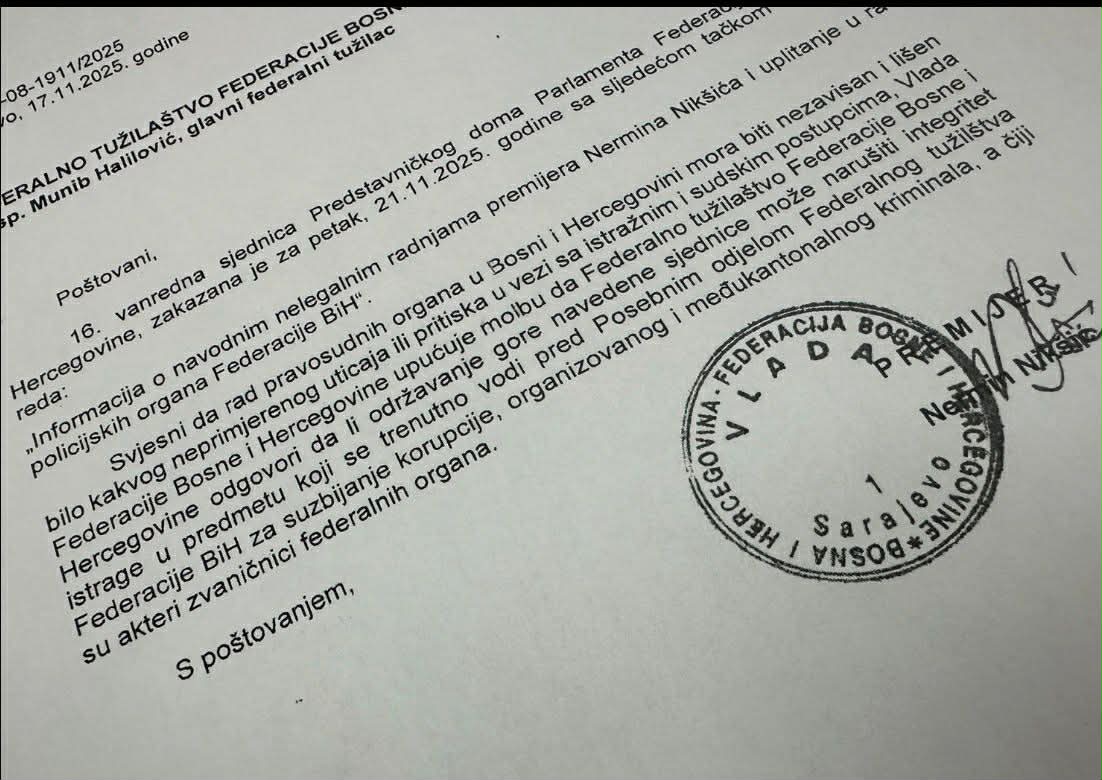 Vanredna sjednica Predstavničkog doma PFBiH zakazana je za petak 21. 11. sa jednom tačkom dnevnog reda “Informacija o navodnim nelegalnim radnjama premijera Nermina Nikšića i uplitanje u rad policijskih organa Federacije BiH”.