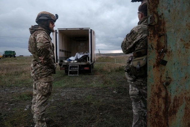 Ukrajinski koordinacijski centar za ratne zarobljenike objavio je na aplikaciji Telegram slike nekoliko velikih kamiona i ljudi u zaštitnim kombinezonima koji provjeravaju tijela u bijelim vrećama.