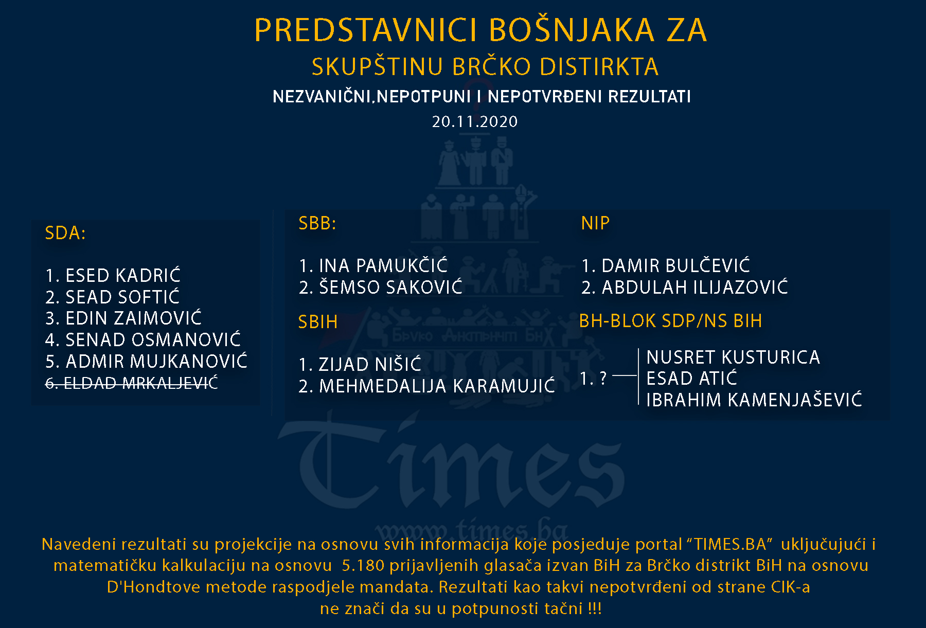 NAPOMENA: Navedeni rezultati su projekcije na osnovu svih informacija koje posjeduje portal “TIMES.BA” uključujući i
