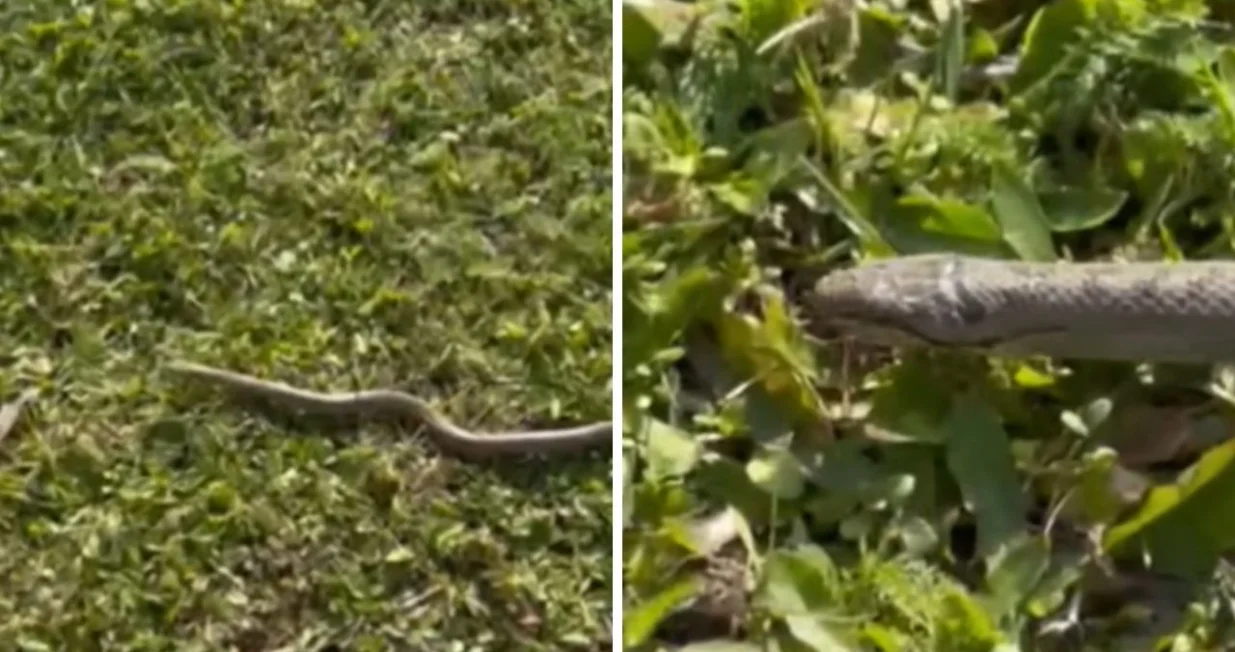 Neimenovana žena je snimila zmiju dok se kretala prema njenoj kući, ali je uspjela reagovati na vrijeme i skloniti je, čime joj je omogućila da se vrati u prirodu.