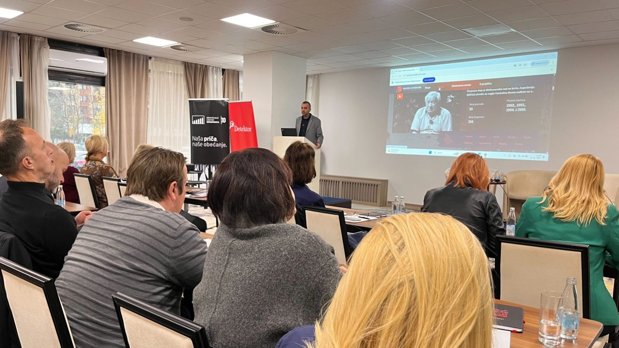 Haris Rovčanin i Džana Brkanić, urednici iz BIRN-a BiH, predstavili su Bazu sudski utvrđenih činjenica o ratu u BiH te kazali da je riječ o edukativnom resursu zasnovanom na sudski verificiranim činjenicama, s fokusom na utvrđene činjenice o ratnim događajima, a ne na počinioce.