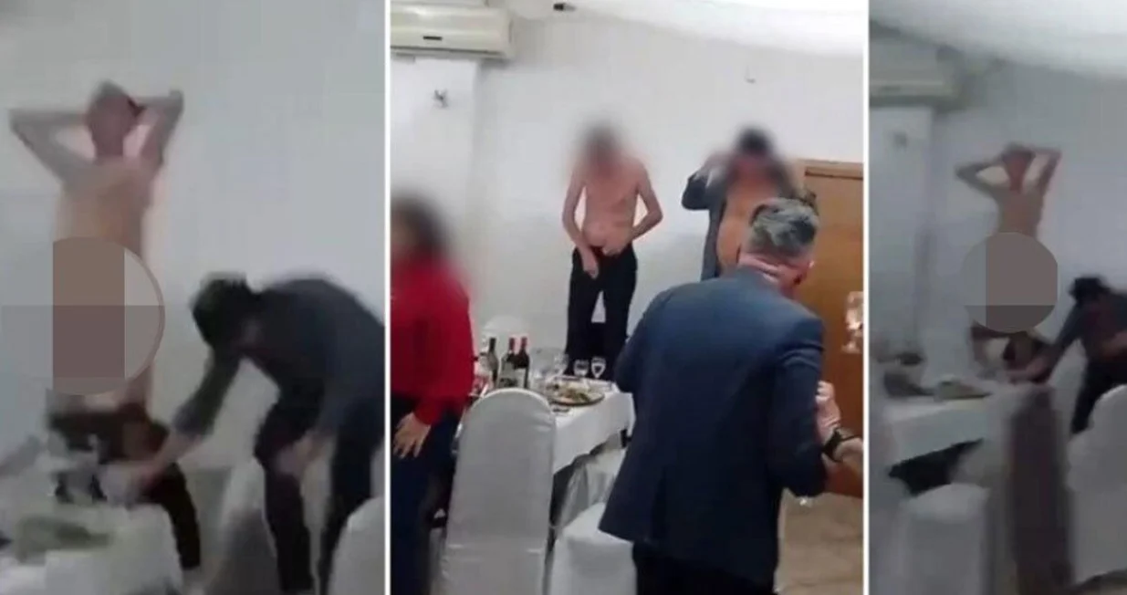 Snimak sa proslave proširio su se društvenim mrežama. Na videu se vidi gost koji se penje na sto, spušta hlače i pleše go dok ga dio okupljenih bodri smijehom i povicima, prenosi Index.hr.