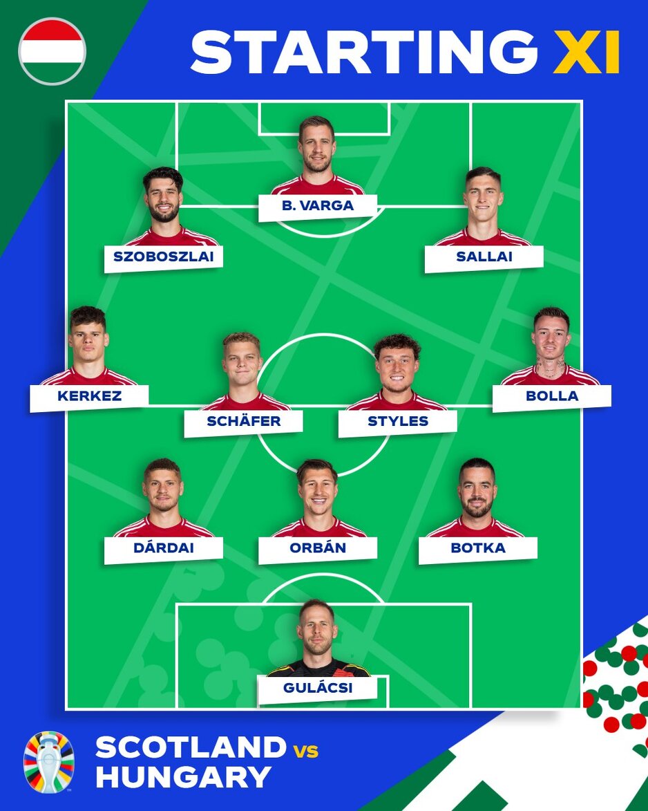 S druge strane, Mađari će odgovoriti s formacijom 3-4-2-1, a od prve minute igrat će: Gulacsi, Dardai, Orban, Botka, Kerkez, Schafer, Styles, Bolla, Szoboszlai, Sallai i Varga.