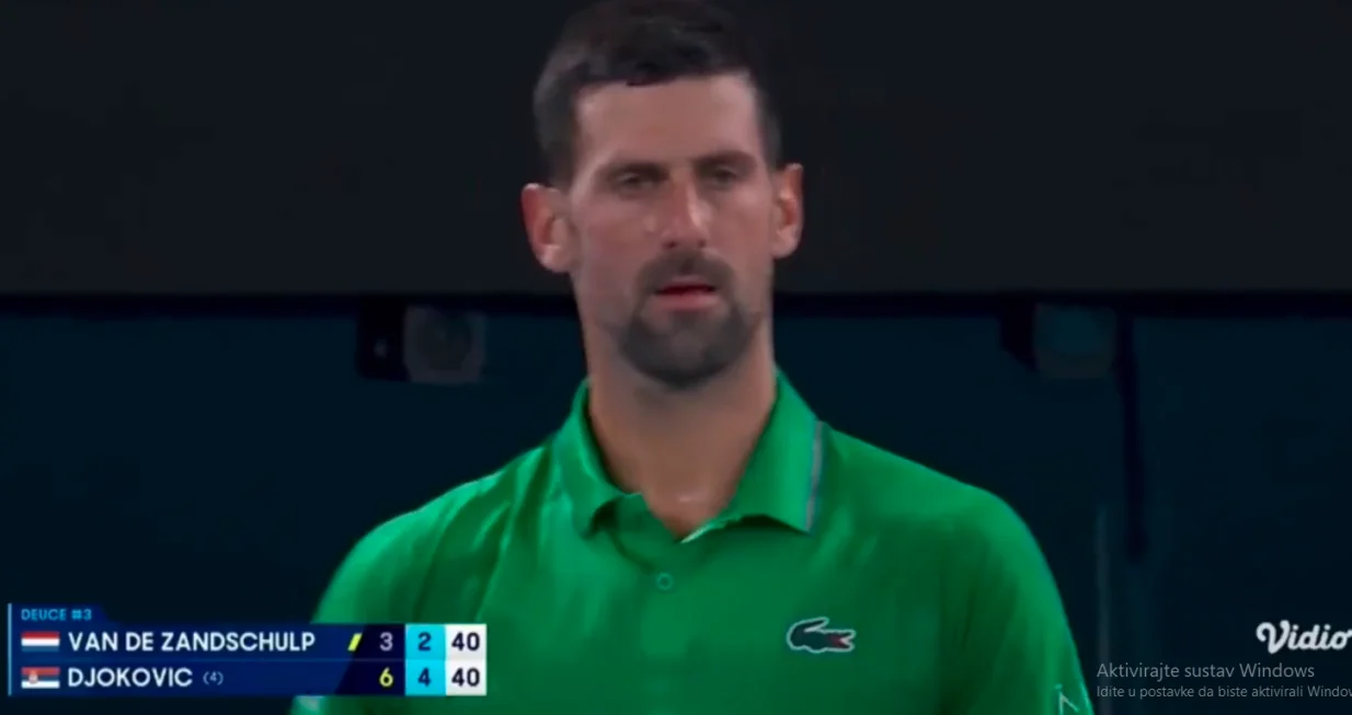 Igrao se sedmi gem drugog seta kada je frustrirani Đoković nakon poena koji je osvojio ljutito napucao lopticu u stranu.