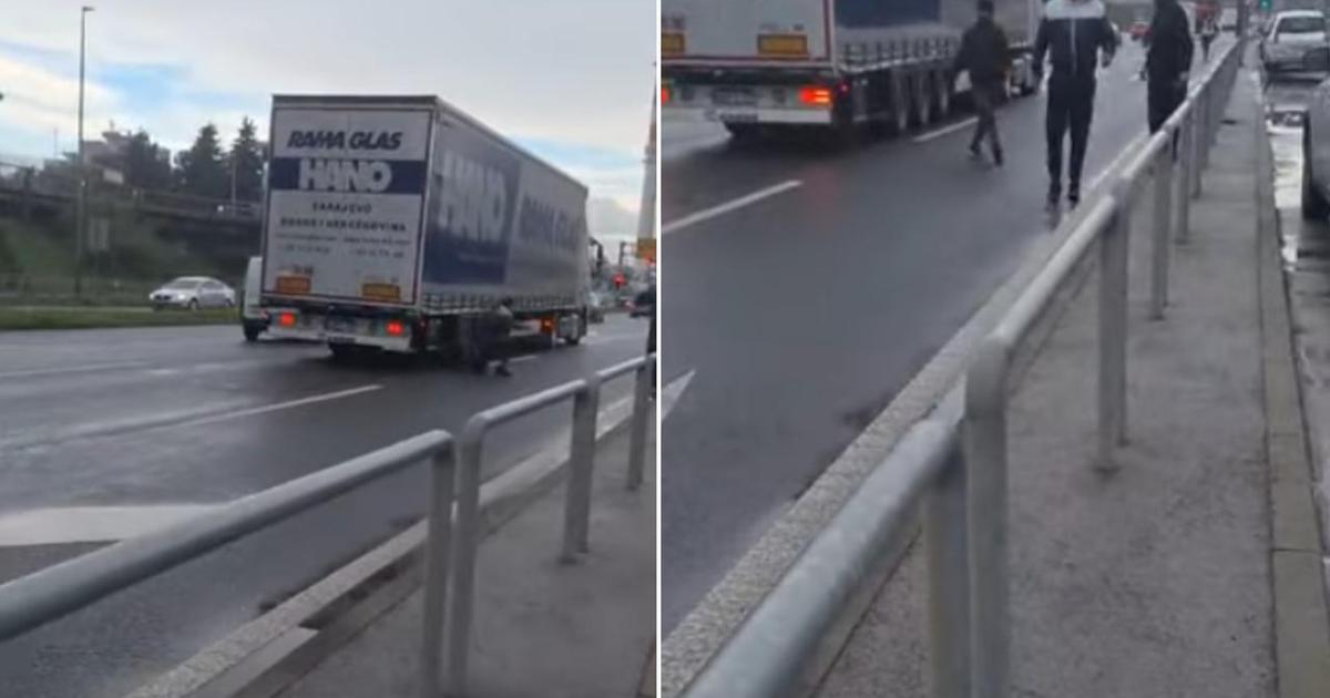 KAportal je podijelio video koji im je poslao čitatelj, a koji je snimljen jutros u samom centru grada, kod autobusnog kolodvora. Snimka prikazuje kako nekoliko migranata izlazi iz podvozja kamiona zaustavljenog na semaforu. Na kamionu, čini se, piše da dolazi iz Sarajeva. Kada su migranti počeli bježati, za njima je krenuo policajac te ih brzo zaustavio.