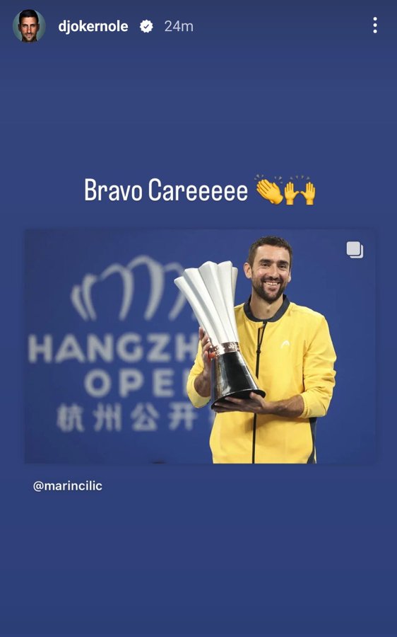 Čilić je nakon pobjede dobio čestitke sa svih strana teniskog svijeta. Jedna od njih bila je i čestitka srpskog tenisača Novaka Đokovića koji je na svom Instagram profilu objavio njegovu fotografiju s trofejem u rukama i opisom: “Bravo Careeeee!”