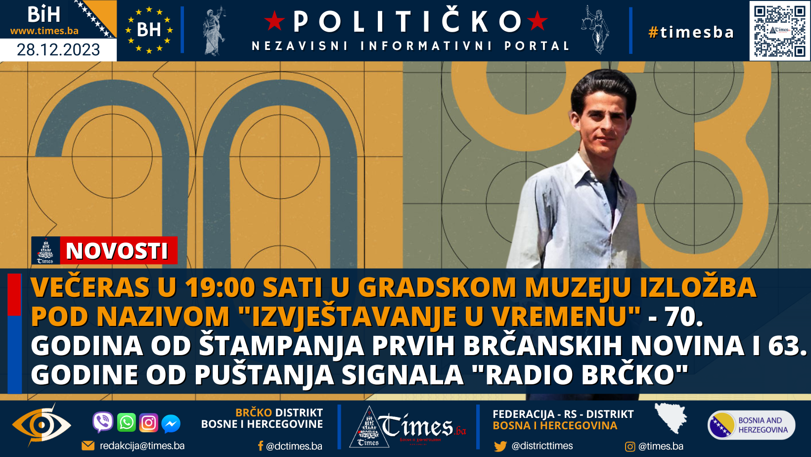 Večeras 28.12.2023. godine u 19:00 sati u prostorijama Muzeja Brčko distrikta BiH, u ulici Cvijete Zuzorić bb (Zgrada Šipada) biti će predstavljena Izložba pod nazivom “Izvještavanje u vremenu”.