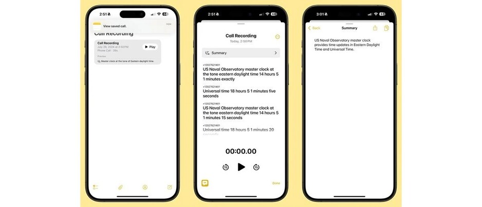 Također, korisnici će imati mogućnost snimanja i transkripcije telefonskih poziva. Tokom razgovora je potrebno dodirnuti dugme za snimanje u gornjem lijevom uglu, a sve osobe u tom razgovoru bit će obaviještene zvučnom porukom da se razgovor snima. Potom će se snimak pohraniti u aplikaciju Notes. Nakon poziva je moguće preslušati poziv, vidjeti puni transkript i dobiti sažetak tog transkripta.